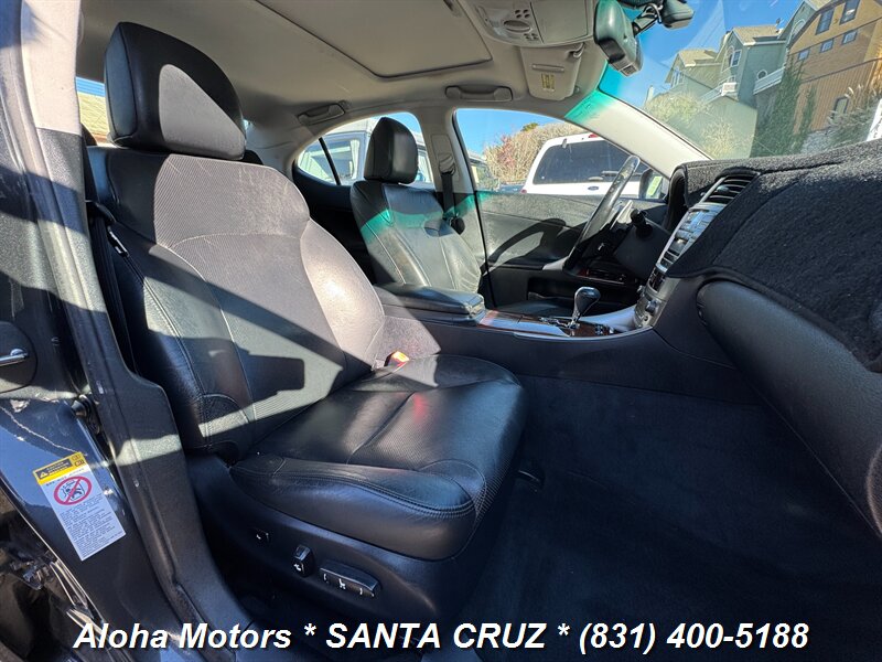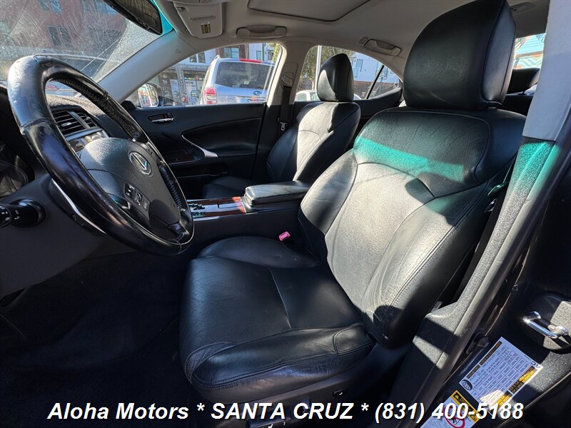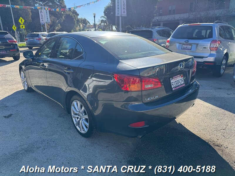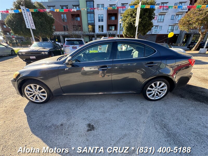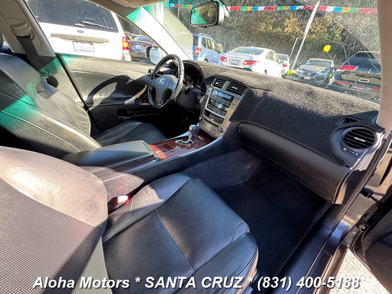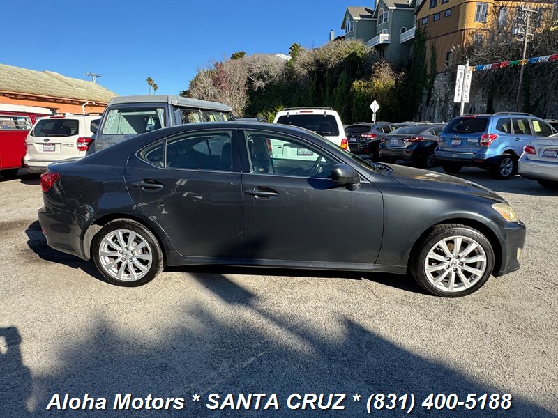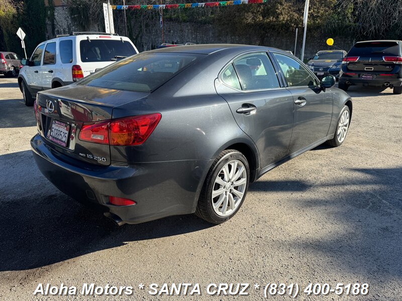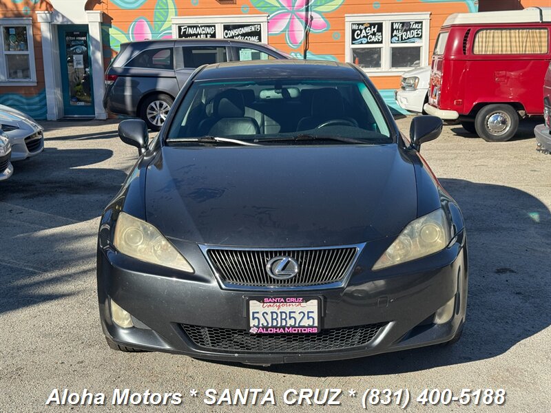 Smoky Granite Mica 2006 Lexus IS 250 with Black leather interior, powered by a 2.5L V6 (204 hp, 185 lb-ft) and a smooth automatic transmission — rated 20 MPG city / 26 MPG highway. Factory equipment includes leather-trimmed seats with power adjustments, dual-zone automatic climate control, power sunroof, alloy wheels, keyless entry, cruise control, full power windows/locks/mirrors, a premium audio system, ABS, traction control and multiple airbags. Clean CARFAX and one previous owner — a well-maintained, comfortable sport-sedan ready to enjoy.