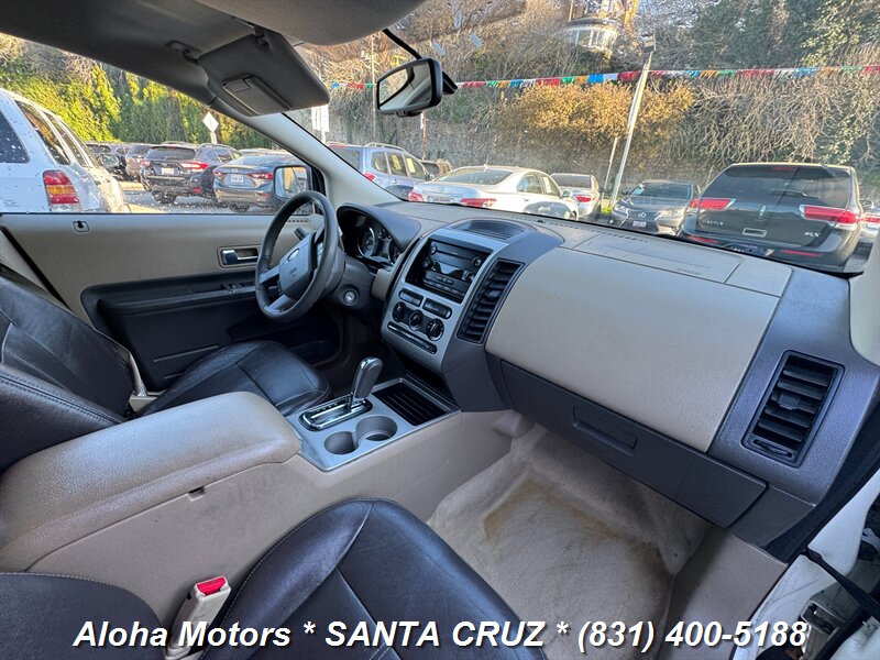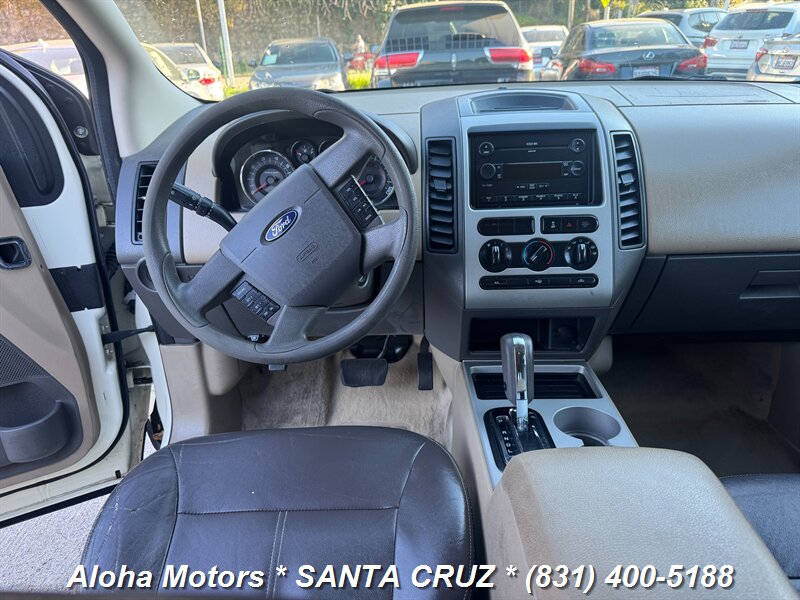 2007 Ford Edge SE with the 3.5L V6 (263 hp, 249 lb-ft) finished in Creme Brulee Clearcoat and a Camel cloth interior. Factory-standard equipment includes a 5-speed automatic with all wheel drive, power windows and locks, remote keyless entry, air conditioning, cruise control, AM/FM/CD audio with auxiliary input, cloth seating with split-folding rear seat, alloy wheels and roof rails, plus a full complement of safety features (front and side airbags, side-curtain airbags and ABS). Clean CARFAX, under 143,000 miles (averaging less than 8,000 miles/year), and rated about 16 MPG city / 22 MPG highway — a comfortable, well-equipped SUV for everyday driving.