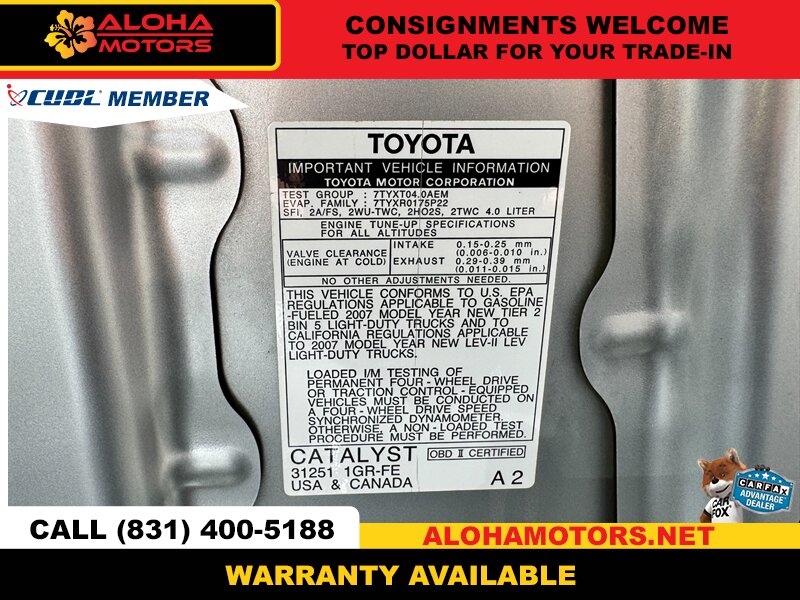 Introducing the ruggedly charming 2007 Toyota FJ Cruiser, a perfect blend of style and capability! With a powerful 4.0L V6 engine delivering 239 horsepower and 278 ft-lbs of torque, this adventurous SUV is ready to tackle any terrain you throw its way.