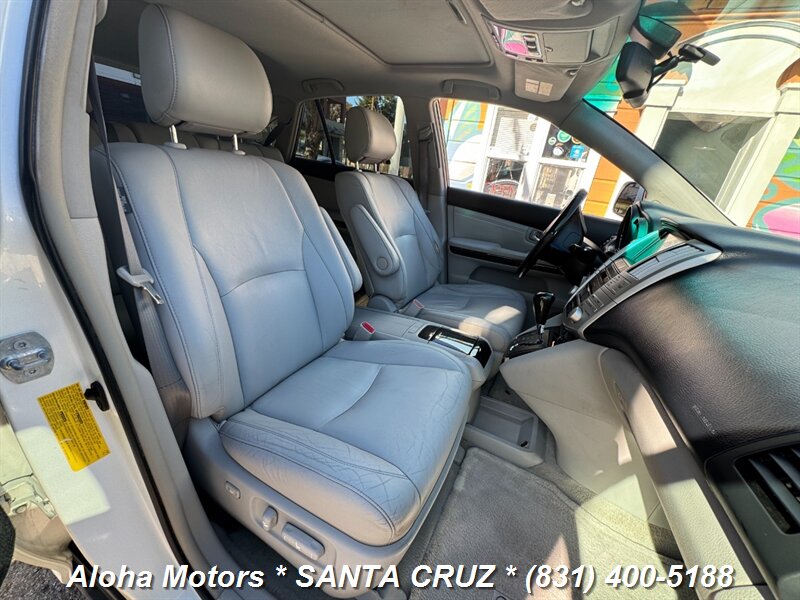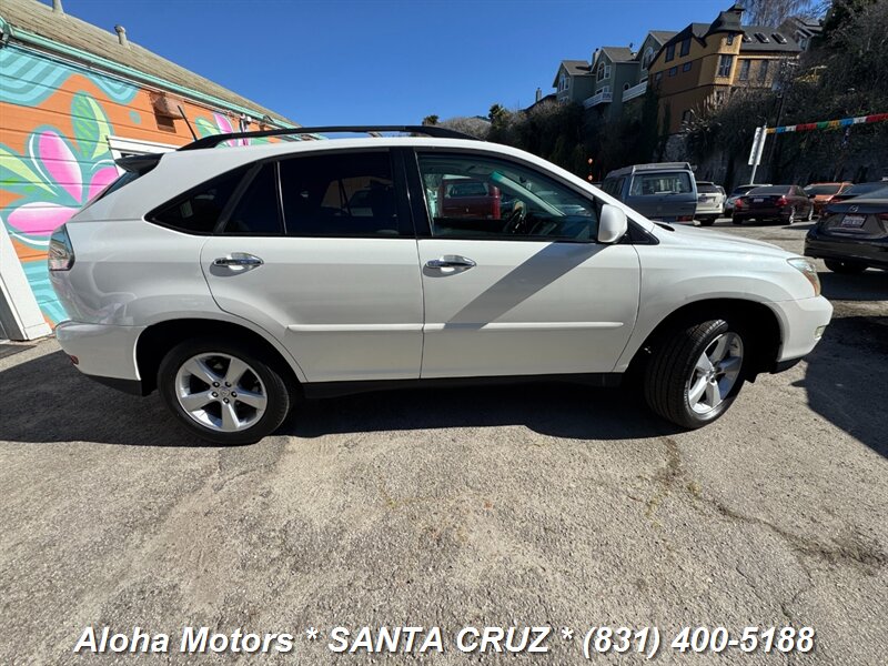 Bright Crystal White 2008 Lexus RX 350 with a Light Gray interior, powered by a smooth 3.5L V6 (270 hp / 251 ft-lb). Clean CARFAX, one owner, below 86,000 miles (averaging under 5,000 miles/year) and great efficiency at about 18 MPG city / 23 MPG highway. Factory-equipped for comfort and convenience with leather-trimmed seating, power-adjustable front seats, a power moonroof, dual-zone automatic climate control, power windows/locks/mirrors, cruise control and steering-wheel audio controls, plus a premium audio system with CD and auxiliary input, alloy wheels and fog lights. Safety features include ABS, traction control, Vehicle Stability Control, front and side airbags with full-length curtain airbags and a Tire Pressure Monitoring System — a reliable, well-appointed luxury crossover ready to drive!
