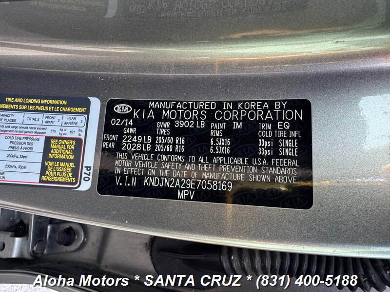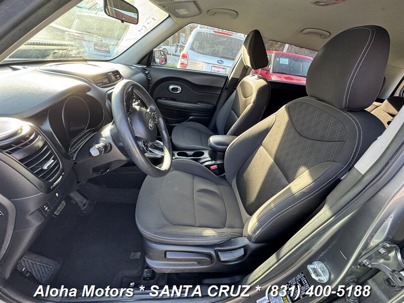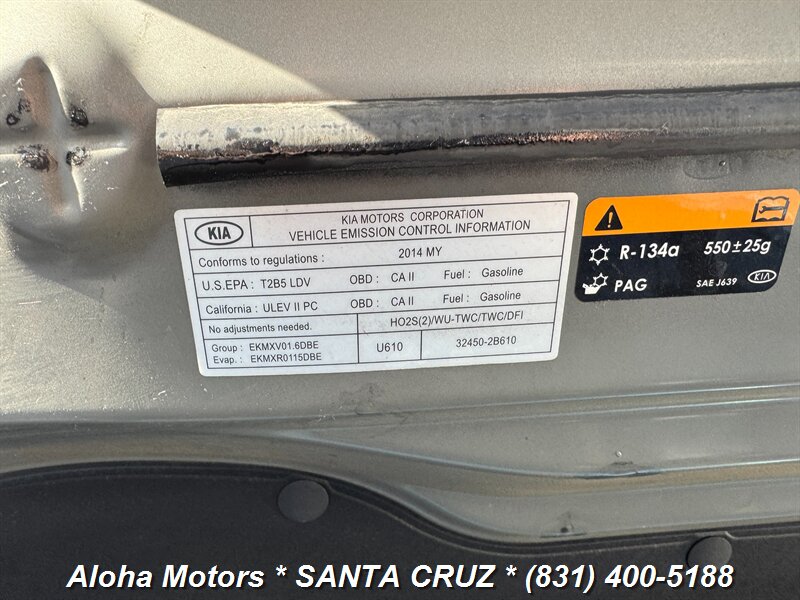 Clean CARFAX, Titanium Gray exterior with a Black interior — this 2014 Kia Soul is powered by a fuel-efficient 1.6L I4 producing 130 hp and 118 ft-lbs, rated at about 24 MPG city / 30 MPG highway. Factory-equipped with essentials for comfort and convenience: air conditioning, power windows and locks, remote keyless entry, cloth seating, a tilt steering wheel with steering-wheel audio controls, AM/FM/CD/MP3 stereo with auxiliary/USB inputs, split-folding rear seats for extra cargo flexibility, and cruise control. Built-in safety features include anti-lock brakes (ABS), stability and traction control, multiple airbags and tire-pressure monitoring for everyday peace of mind. Friendly, practical, and ready to drive.