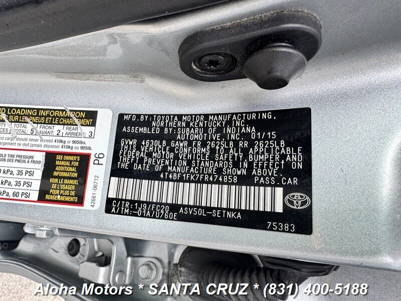 Step inside to discover a sanctuary of sophistication, where the luxurious black interior envelops you in comfort and style. The Camry LE is replete with exceptional factory default features, including a premium audio system, a touchscreen display, Bluetooth connectivity, and a rearview camera, all harmoniously designed to elevate your driving experience. With a clean CARFAX report, this majestic vehicle promises reliability and peace of mind. Embrace the road with confidence and grace in the 2015 Toyota Camry LE—where innovation meets elegance.